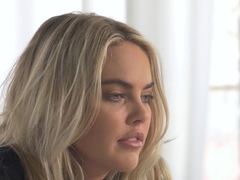 Big boobed blonde goddess shows her body